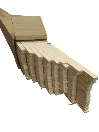 Baguettes bois profilés de 2.5m de long. Section biseautée.