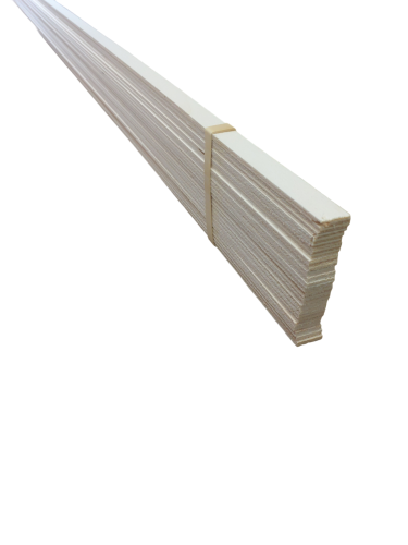 Baguettes bois profilés de 2.5m de long de forme rectangulaire.