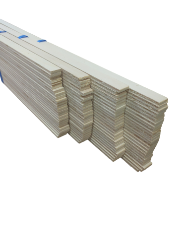 Baguettes bois profilés de 2.5m de long de forme rectangulaire.
