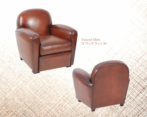 Le fauteuil Club Mimi au design parfait, qui s'associe à tout type d'intérieur. Sa structure en Pin massif offre une stabilité, et une excellente duré de vie. Revêtue de peau de basane pleine fleur, teinté, ciré et patiné à la main, nous offre un rendue lisse et agréable au toucher.