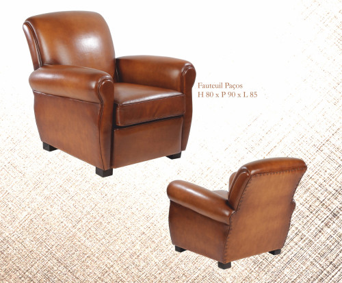 Le fauteuil Club Paços au design parfait, qui s'associe à tout type d'intérieur. Sa structure en Pin massif offre une stabilité, et une excellente duré de vie. Revêtue de peau de basane pleine fleur, teinté, ciré et patiné à la main, nous offre un rendu lisse et agréable au toucher.