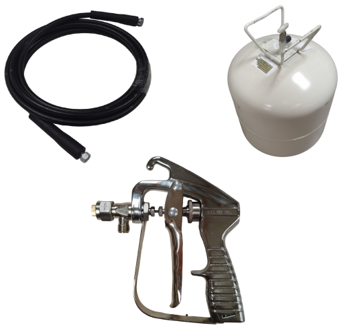 Kit bonbonne de colle de sous pression avec son pistolet et son tuyau.