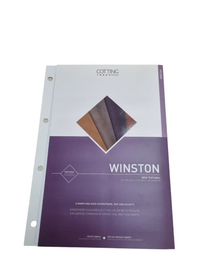 Plaquette Winston d'une laize de 140 cm. Avec échantillons de plusieurs coloris.